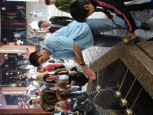 Joe Mauer cleaning his hands in accordance with Japanese customs at the Sensoju Temple. After cleaning your hands you are suppose to drink the water, which Joe decided not to do!